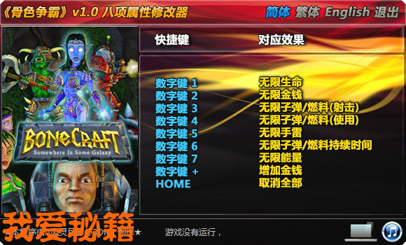 点击简体、繁体、English,可以切换语言 (切换语言后修改器将把该语言设置为默认语言)