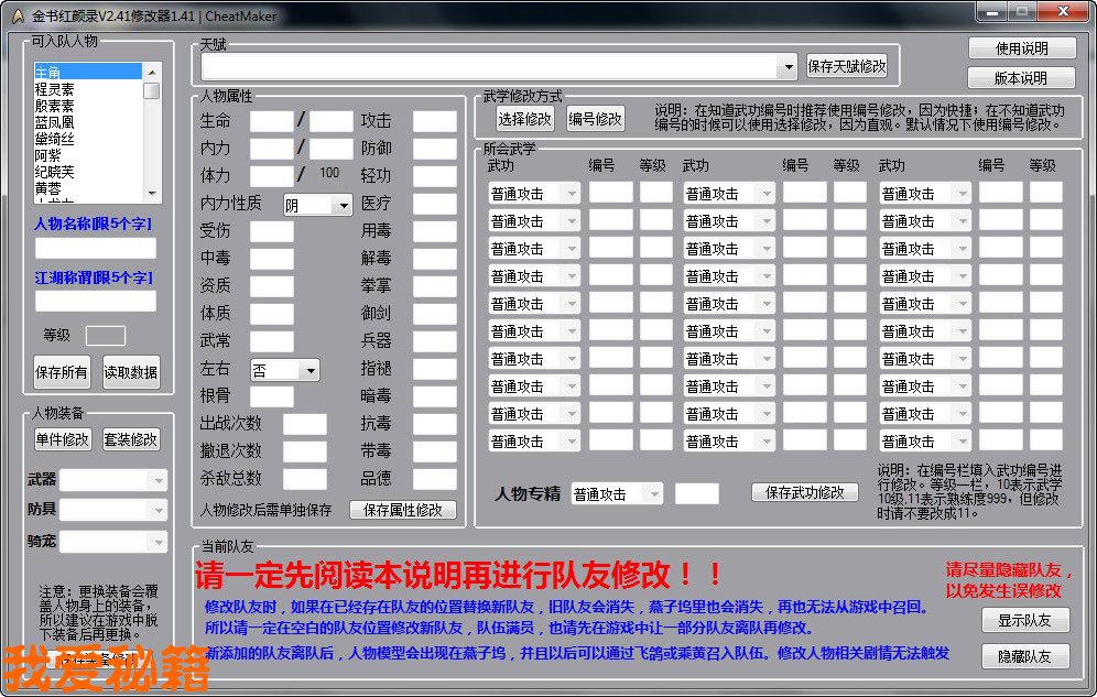修改程序,仅支持金书红颜录V2.41版本,向下不兼容。金书V2.24、V2.32、V2.40可以使用历史版本修改。