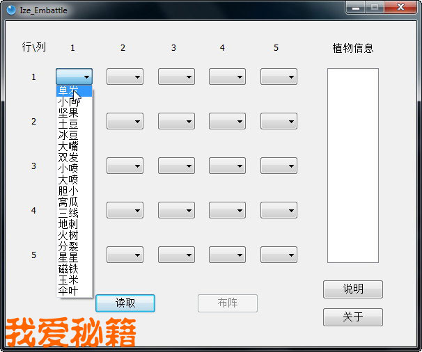 由于刷出来的阵型已经不能满足某些抖M(无误),利用混乱来摆阵又会出现各种异常(植物会晃来晃去、眨眼睛等等),所以做了这么一个修改器。