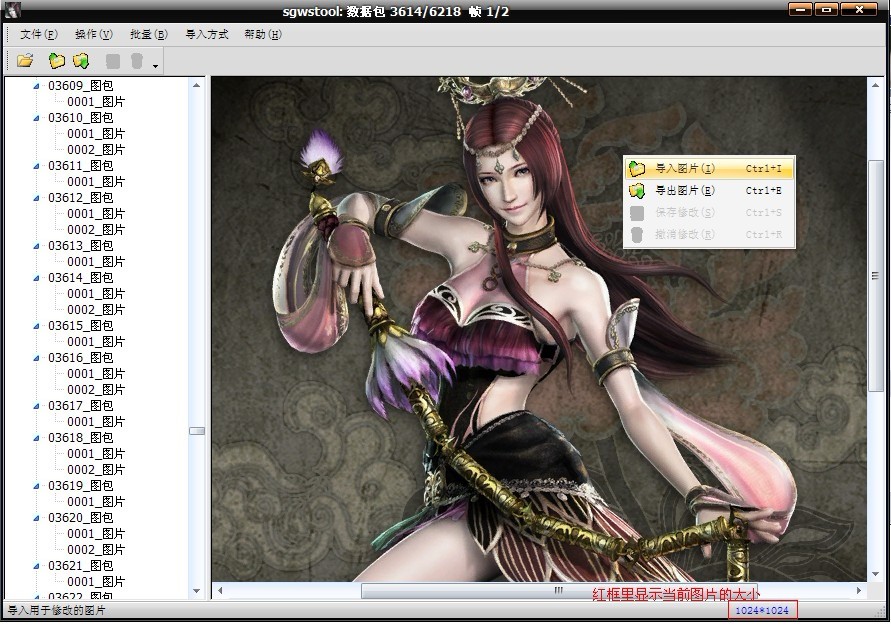 3.在图片上右击,可选择“导入图片”和“导出图片”。一次性导入的图片最大为32个,多于这个数量,工具会提示进行保存;