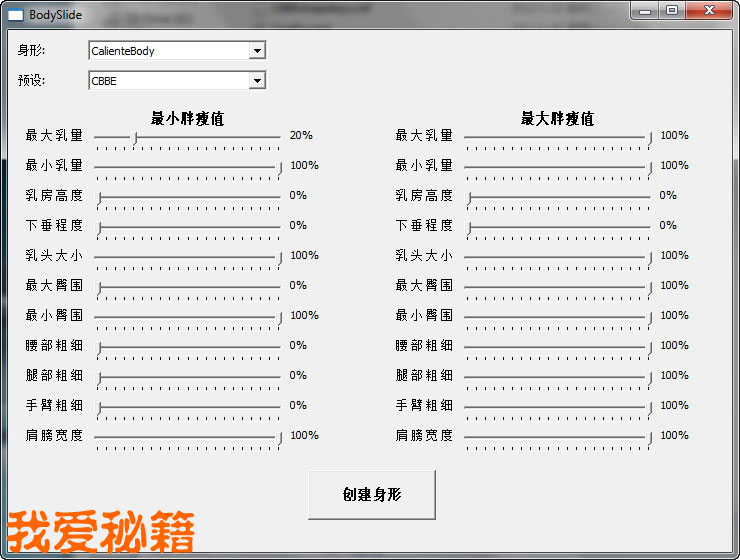 该程序我已经汉化了两个常用的身形,各位可根据需要创建自己的身形。