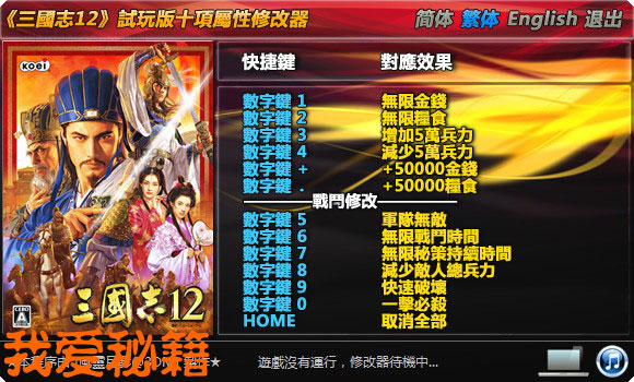 | 2012.04.13 | 三国志12:体验版修改器 + 10 | - | - |