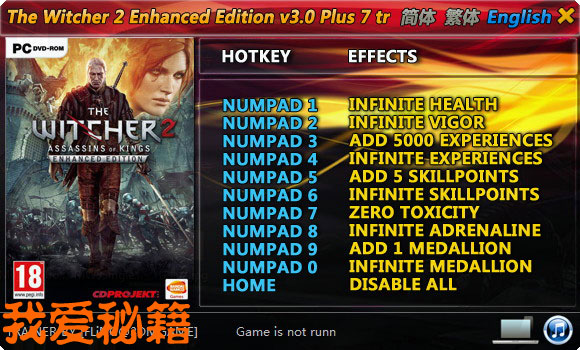 | 2012.04.19 | 巫师2:国王刺客-增强版v3.0修改器 + 7 | - | - |