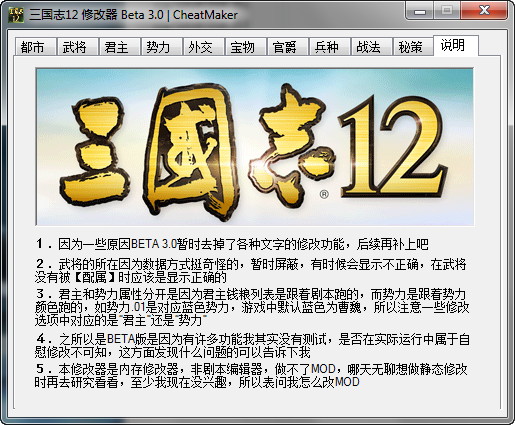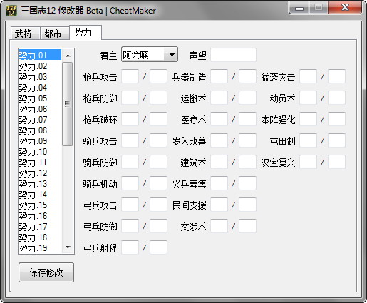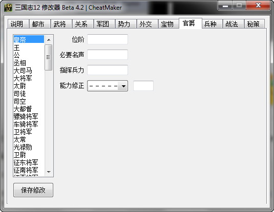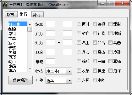 只是把武将列表弄完了,能修改都市、武将、势力的属性