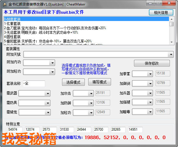本工具用于修改list目录下的suit.bin文件