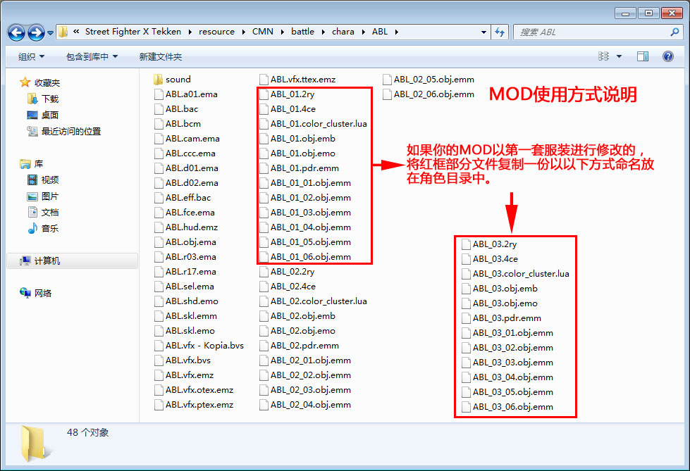 5、工具最多支持同角色九套服装进行修改,如你有自定义MOD,将角色相关文件都复制一份根据游戏文件命名法重命名,如根据角色第2套服装修改了"ABL_02.obj.emo"文件,只要将文件命名为"ABL_03.obj.emo"并将第2套的服装所有其它的文件都按"ABL_03"前缀进行拷贝一份并修改即可;工具在遍历角色服装时会自动添加到服装列表中!