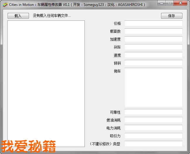 本工具来源于 都市运输中文网 UID:sims1 汉化:AGASAHIROSHI 简价: 车辆属性修改器