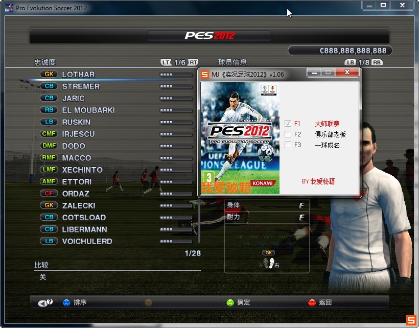 实况足球2012v1.0-v1.02一球成名多功能修改器v2.0.1