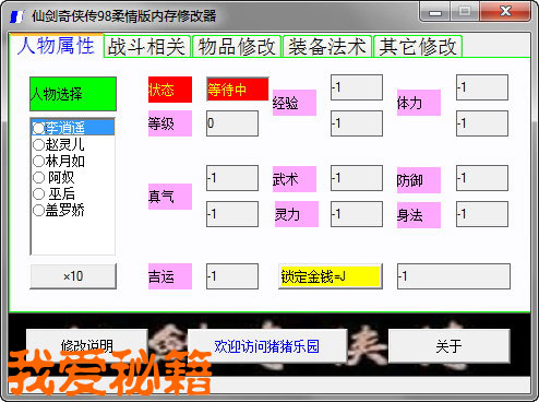 仙剑奇侠传98柔情版内存修改器最终六版