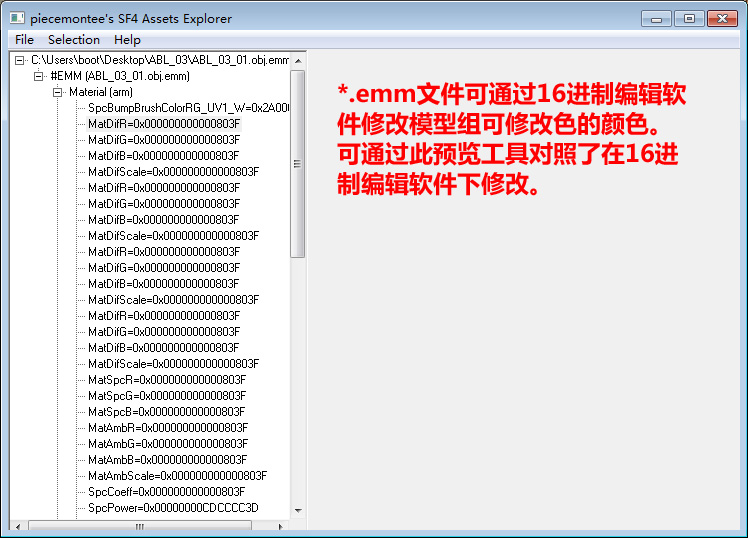 然后用 piecemonteeSF4explorer 导入对应的模型组