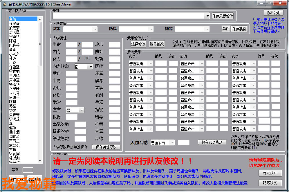嗯嗯,今天新版出来了,一时手闲,就着原来模板把人物修改器更新了。