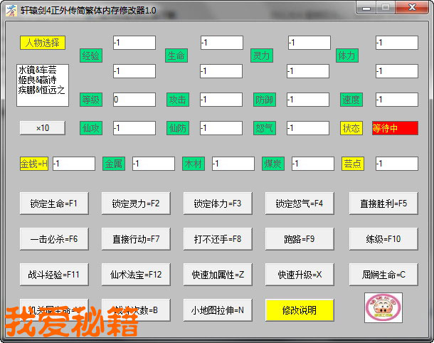 轩辕剑4正外传简繁体内存修改器1.0版
