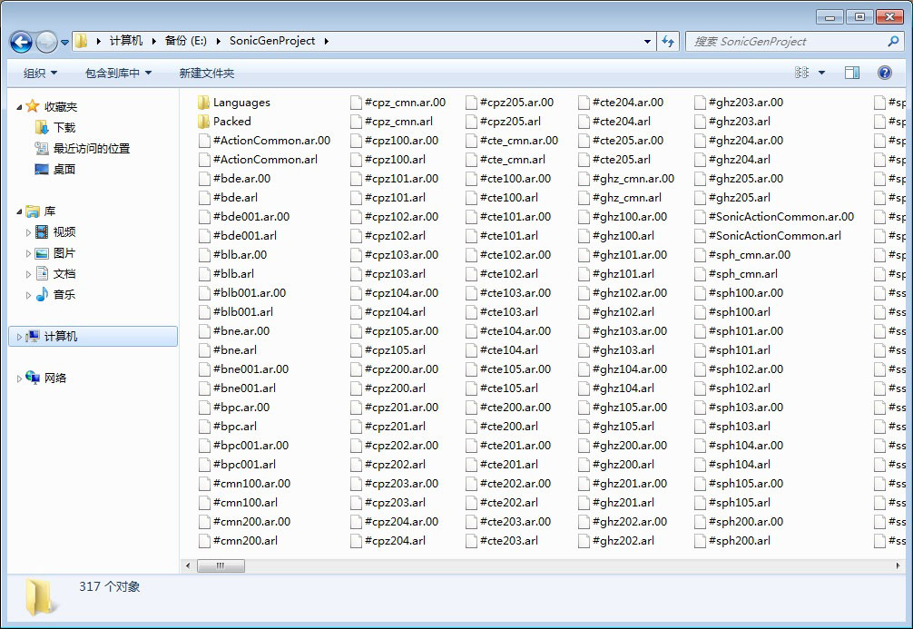 2、从带#号的文件中选择关卡用 SonicGLvl (SGLvl.exe)打开。打开时间根据你的电脑性能决定。越大的关卡打开时间越久。
