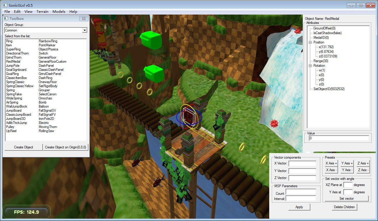 3、完全打开后你就可以对关卡进行编辑了,如果你只是想创建自己独有的关卡,而不编辑游戏原始关卡,你可以直接用 SonicGLvl 导入模型文件和贴图进行编辑。