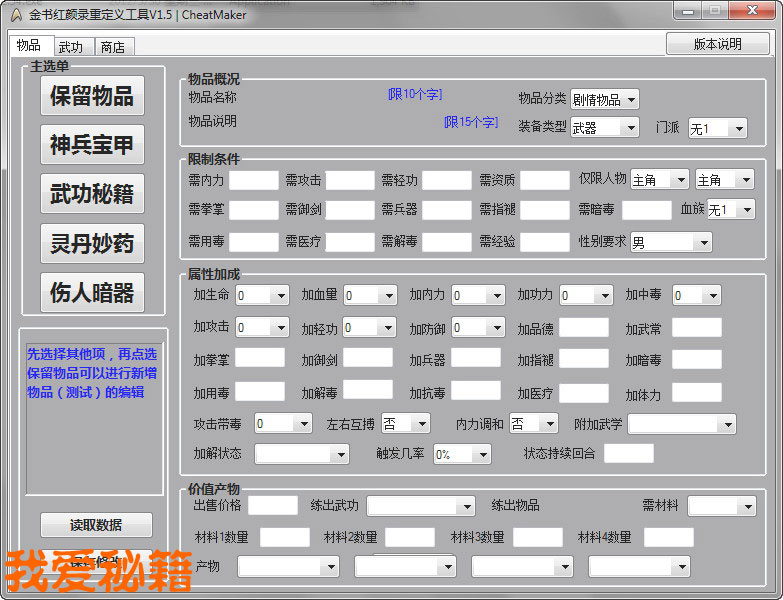 评论:金书红颜录v2.54物品武功商店重定义工具