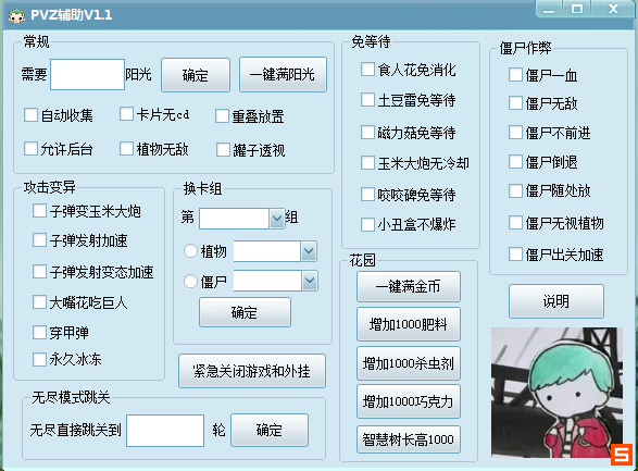 大半夜总算把PVZ辅助做完了下礼拜就考试了,总算在做辅助上可以告一段落了新手上路,献丑了 废话不说,先上图