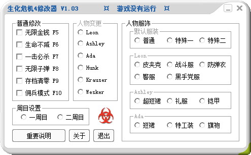 2、增加自动读取游戏人物、衣服功能,防止有的朋友选错(如人物为里昂,那么ada等的衣服就不能选择)