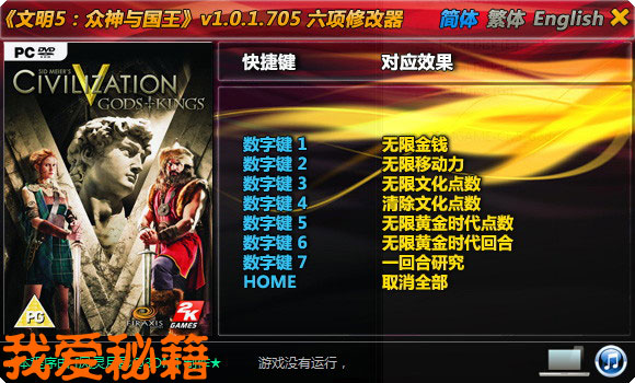 | 2012.07.16 | 文明5:众神与国王v1.0.1.705修改器 + 6 | - | - |
