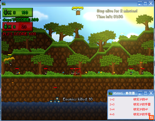 就如游戏名字那样,这是一款支持1-2名玩家闯关的街机游戏,游戏内容很丰富,不但有不同的武器,而且还可以用绳索抢来敌人的直升机驾驶