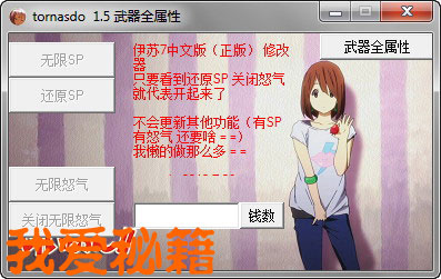 一共3个功能 无限技能 无限大招 修改钱 XP的 不兼容WIN7