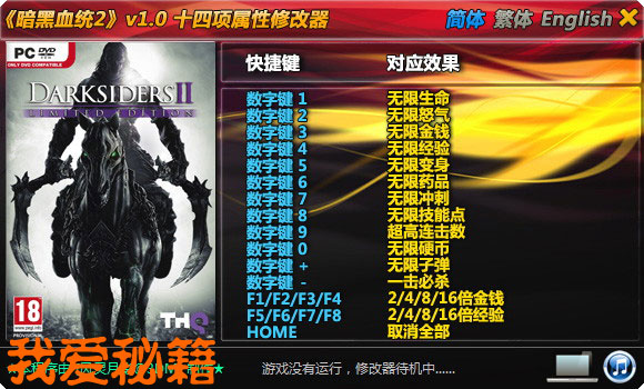 点击简体、繁体、English,可以切换语言 (切换语言后修改器将把该语言设置为默认语言)