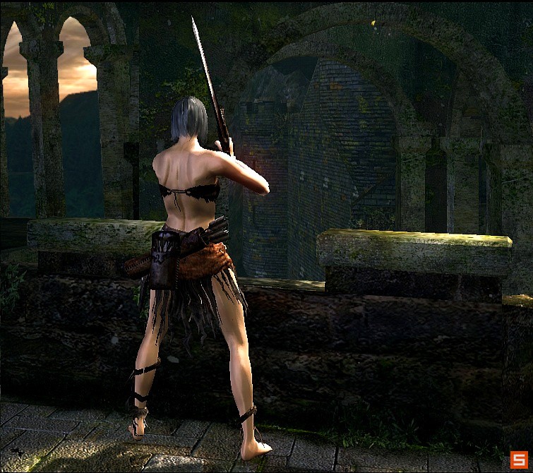 无SMAA效果,仔细观察人物肩部边缘,和右边城墙石头。