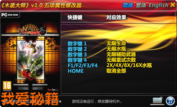 点击简体、繁体、English,可以切换语言 (切换语言后修改器将把该语言设置为默认语言)