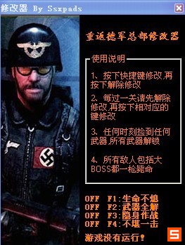 开启“F4”:所有敌人一刀就可以杀死(铠甲男可能要二到三刀),同时也拥有无敌模式