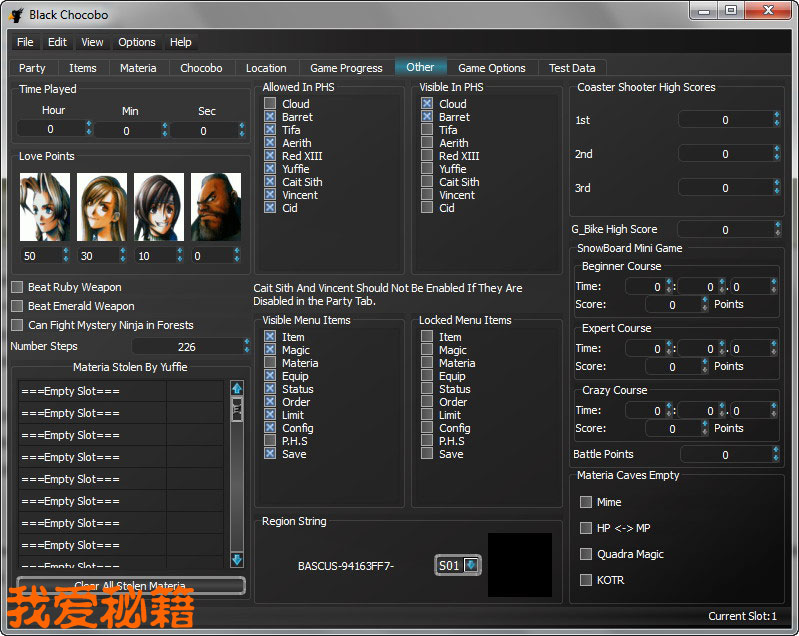 然后比如我们用的是SAVE 08, 对应的就是SAVE09.FF7,选中这个文件,然后选一个存档SLOT. 点击上面的SLOT 0X那个小横条,这样存档文件就打开了.