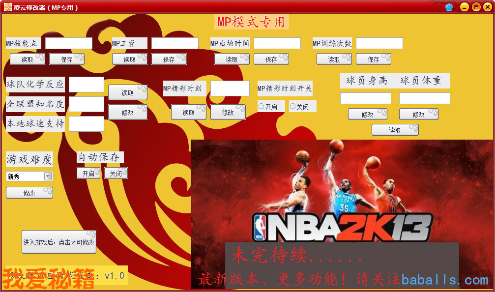 我也会在NBA2k13来临之前好好的研究2k的游戏,争取在2K13登陆时,做出更完美的修改器!!