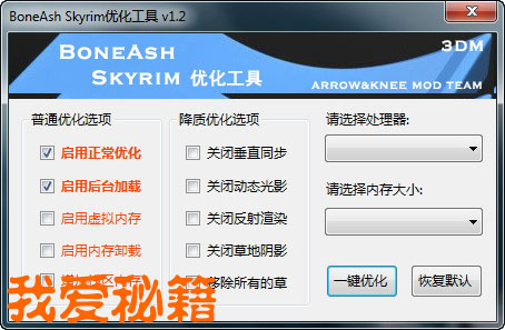 一款小巧的上古卷轴5优化工具,此软件由BoneAsh原创制作,