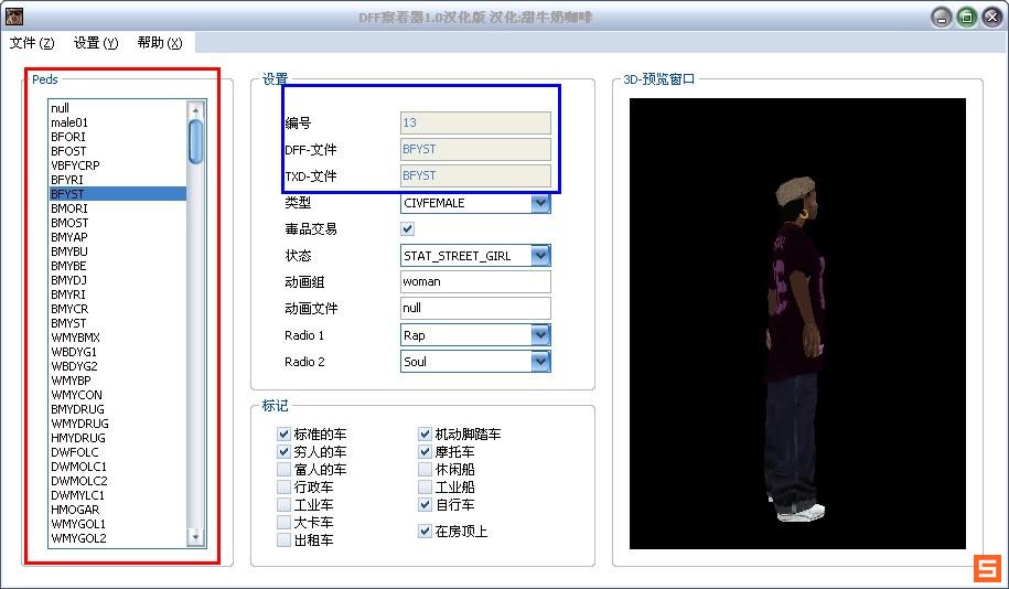 侠盗飞车:圣安地列斯Ped人物查看器(汉化版)v1.0