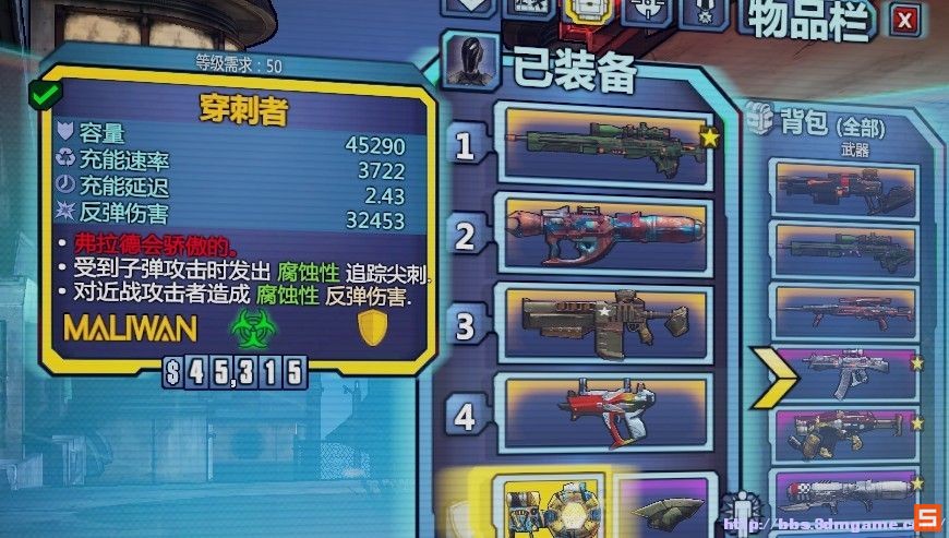 无主之地2,50级手工完美刺客存档,上面少说有20件 传奇橙色