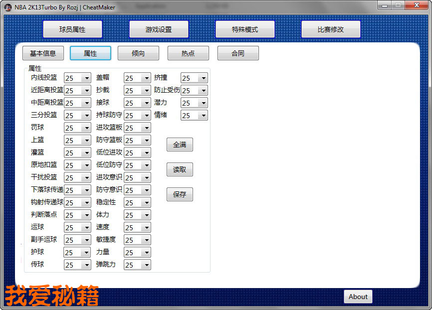 中文界面,全能修改/MP点/属性/合同/交易/比赛修改