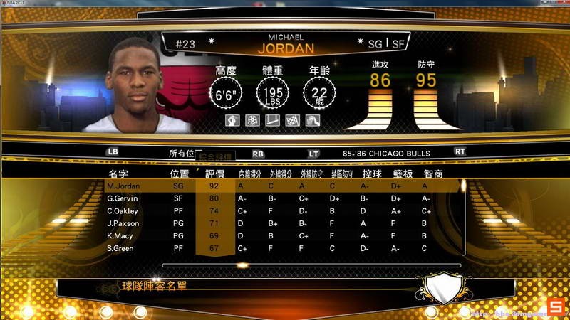选用85-'86的乔丹 和88-'89的皮朋 还有其他副将们从各时期的公牛队共13人