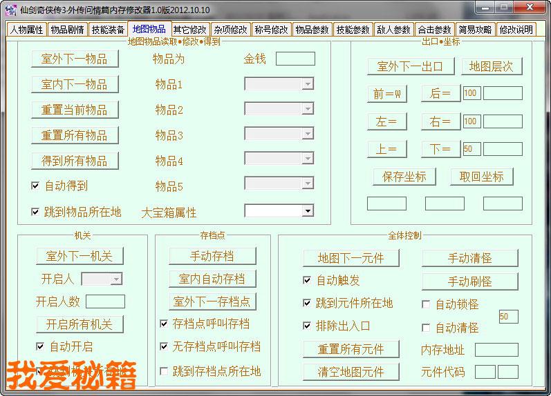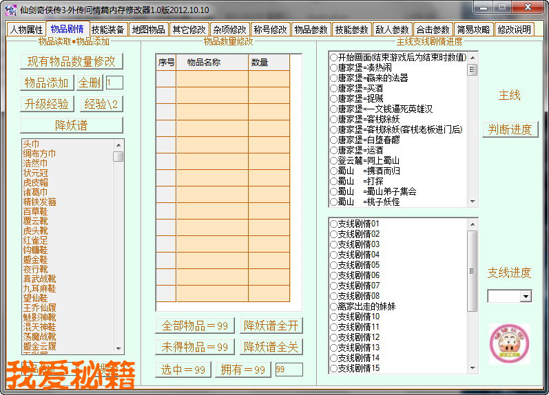 物品添加功能和修改降妖谱功能读取后尽快修改,不然可能出错