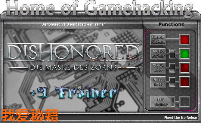 | 2012.10.15 | 耻辱/羞辱Dishonored v1.0修改器2 + 9 | Reloaded v1.0 | - |