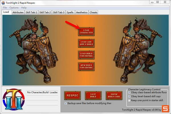 1. 首先点击主介面的 Load Character 来载入你想要修改的角色。