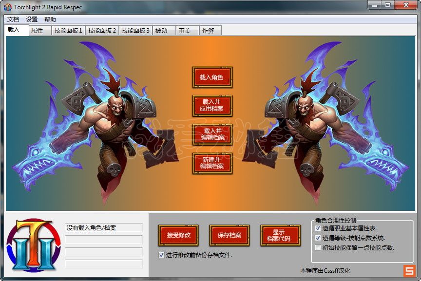 遇到问题想还原存档的方法:到 X:My DocumentsMy GamesRunic GamesTorchlight 2saveTL2RapidRespec Backups 目录裡找之前的存档还原掉。