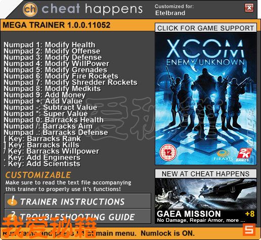 | 2012.10.19 | 幽浮:未知敌人v1.0.0.11052修改器 + 17 | - | - |