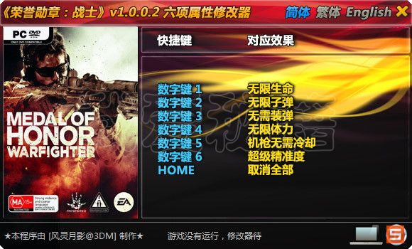 | 2012.10.24 | 荣誉勋章:战士v1.0.0.2修改器 + 6 | - | - |