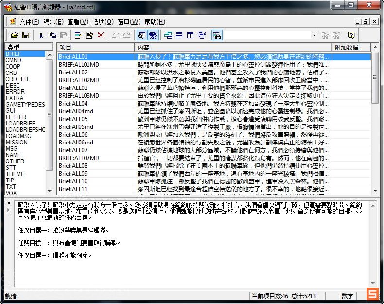 【推荐】csf编辑器,简体中文版,做任务和MOD使用。适用红警、尤里、将军等游戏