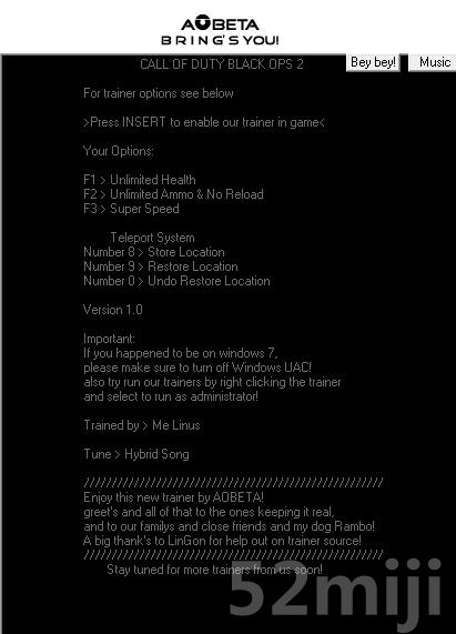 | 2012.11.14 | 使命召唤9:黑色行动2v1.0修改器 + 5 | v1.0 | +5 |