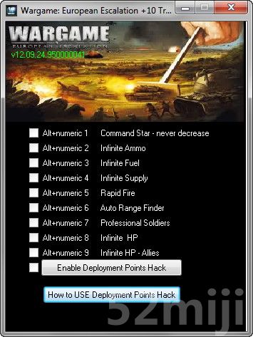 | 2012.12.10 | 战争游戏:欧洲扩张v12.09.24.95修改器 + 10 | v12.09.24.950000041 | +10 |