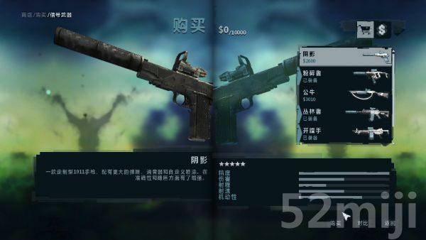 阴影M1911消音加红点,威力比原版的大,而且强化了匿踪效果,喜欢猥琐的玩家可以玩玩。。