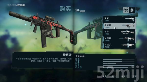 粉碎者VECTOR,消音,五十发弹,射速高,还自带瞄具.威力比原版高出了不止一星半点啊。。AR威力,SMG射速。。所以我特喜欢用