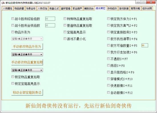 | 2017.02.08 | 新仙剑奇侠传多功能内存修改器 | 繁体中文 | v1.5 |