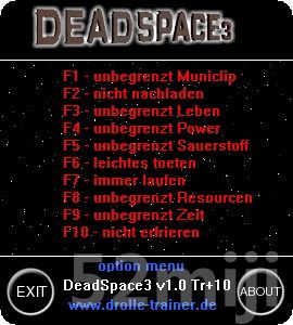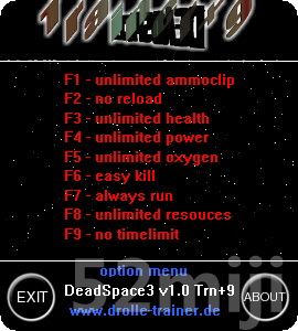 | 2013.02.11 | 死亡空间3v1.0修改器 + 9 | Reloaded v1.0 | +9 |