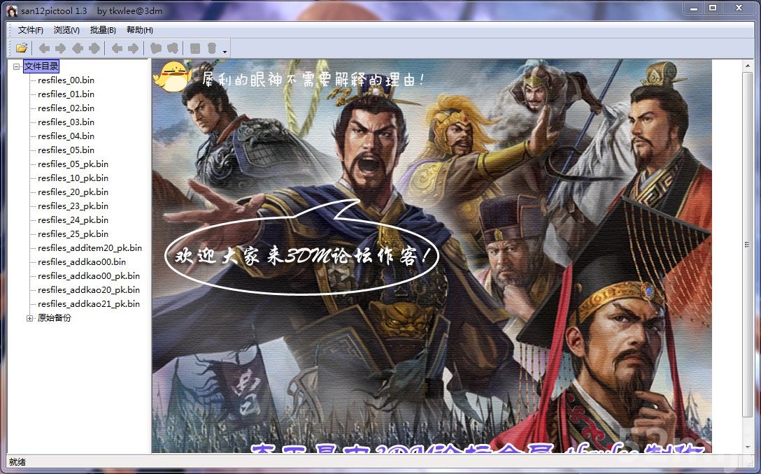 本工具拥有运行速度快,占用内存小,支持图片多,适用于MOD制作等优点,是喜欢个性化《三国志12》的玩家们乐用之佳品!