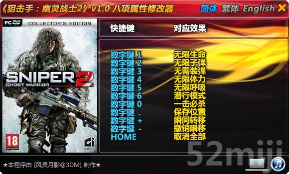 | 2013.03.14 | 狙击手:幽灵战士2v1.0修改器 + 8 | v1.0 | - |